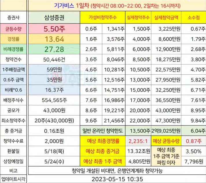 기가비스 공모주 최종 예상 균등수량 (0) | 2023.05.16 |