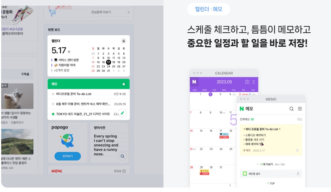 아직은 익숙해지는데 시간이 조금 필요할 것 같지만, 환율이나 파파고 번역기, 네이버 캘린더를 PC화면에서 바로 이용할 수 있어서 더 편해진 측면이 있네요. 기존에 광고가 주루룩 있던 부분에 조금더 쓸모있는 기능이 추가되었고