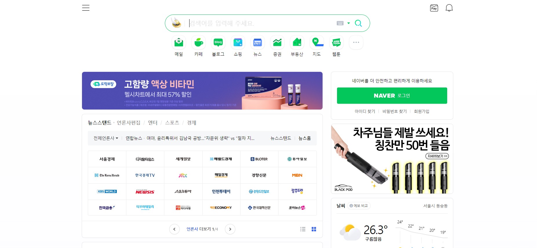 네이버 특유의 로고가 사라진 부분은 조금 허전하긴 하네요.