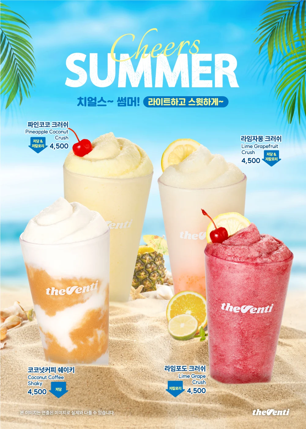 라임포도크러쉬, 코코넛 커피 쉐이키, 라임자몽크러쉬, 파인코코크러쉬 전 상품 4500원으로 동일하며