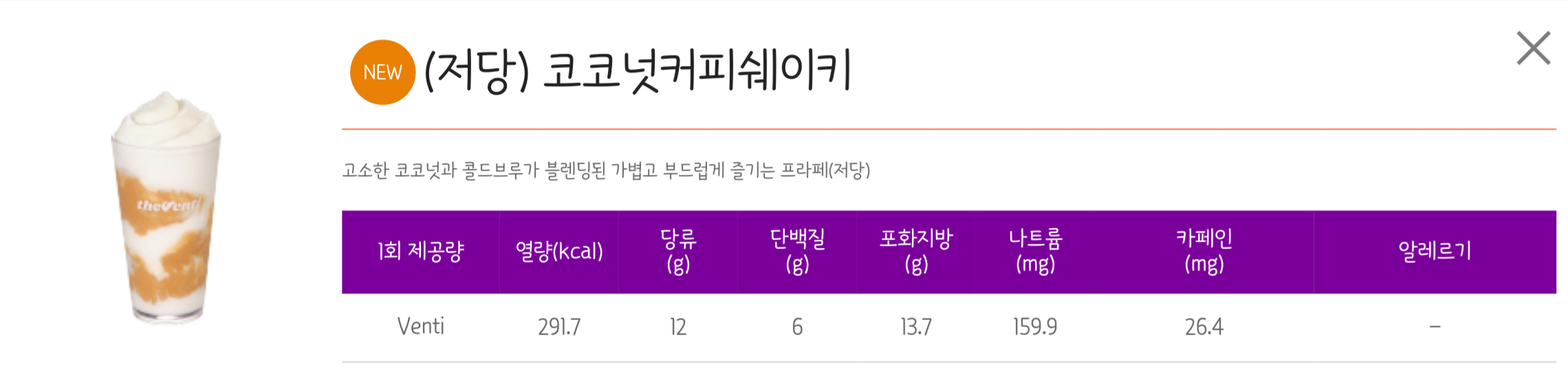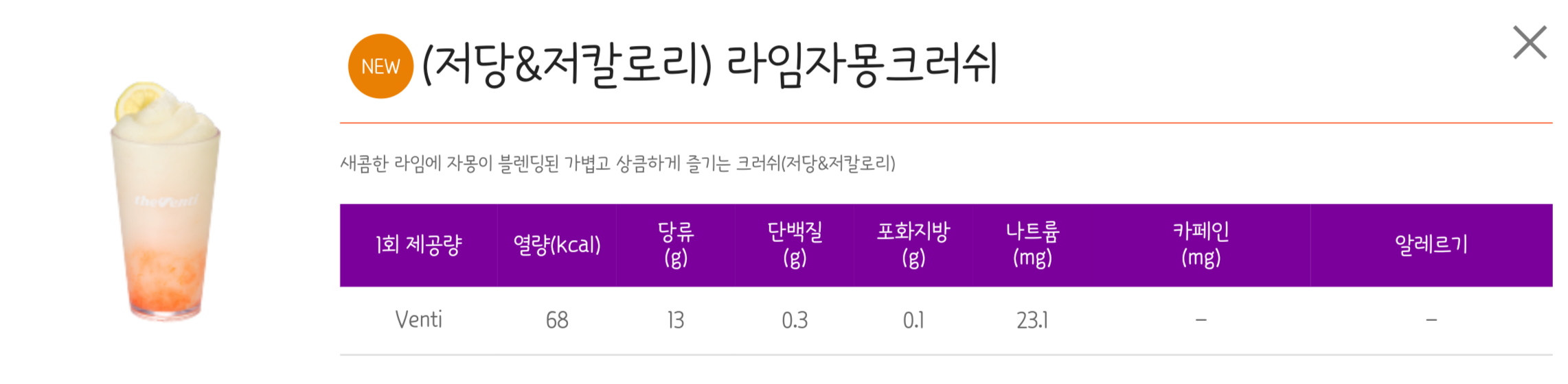 더벤티 저칼로리,저당 음료 영양성분