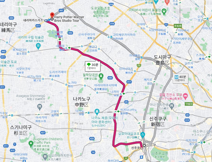 신주쿠역에서 도쿄 해리포터 스튜디오는 오에도선으로 약 23분 소요됩니다.
