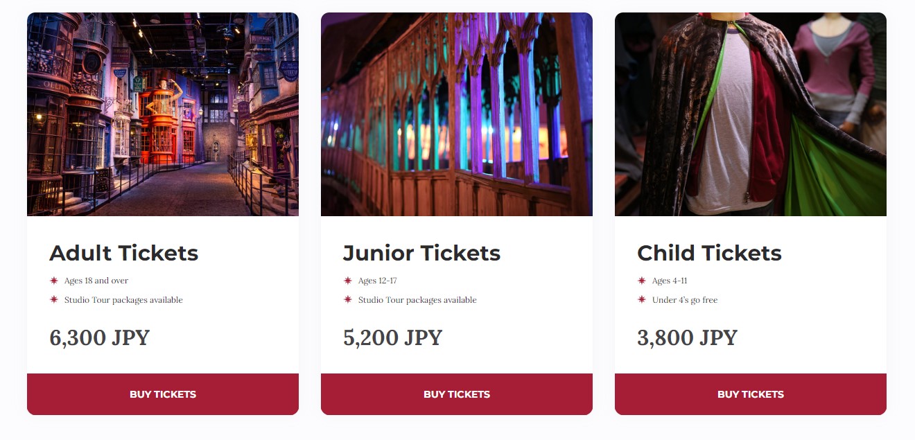 입장 시간은 30분 단위로 예약받고 있으며, 도쿄 해리포터 스튜디오와 거의 비슷한 금액으로 아동, 청소년 , 성인에 따라 원화로 결제가 가능합니다. 한국어로 예약이 가능하기 때문에 편하고 안전하지만 이미 10월까지 예약이 마감되어 혹 올 여름 도쿄 방문을 계획하고 계신다면 공식 홈페이지를 통한 예약을 추천드립니다.