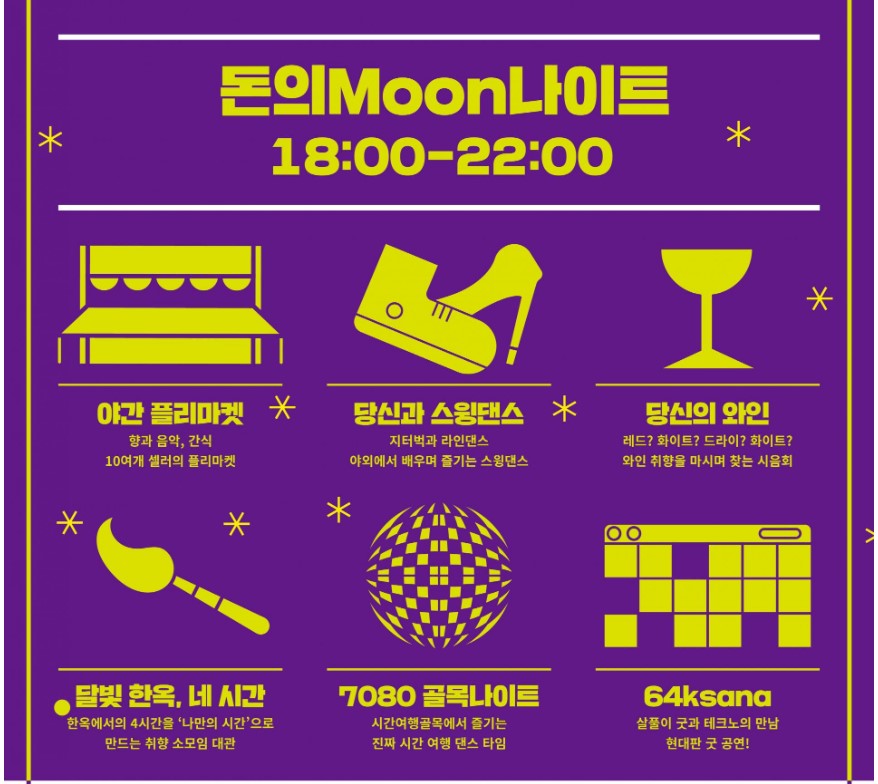 • 백 년의 밤: 돈의문 박물관 마을에서 밤에 진행되는 다양한 문화 행사입니다.