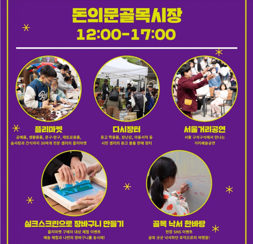 돈의문 박물관마을에서는 5월 27일 돈의문 골목시장 축제를 개최할 예정입니다. 하루동안 돈의문 박물관 마을의 모든 프로그램을 경험해 볼 수 있으며 입장료는 무료이니 관심있으신 분들은 참여하시면 좋은 기회가 될 것 같습니다.
