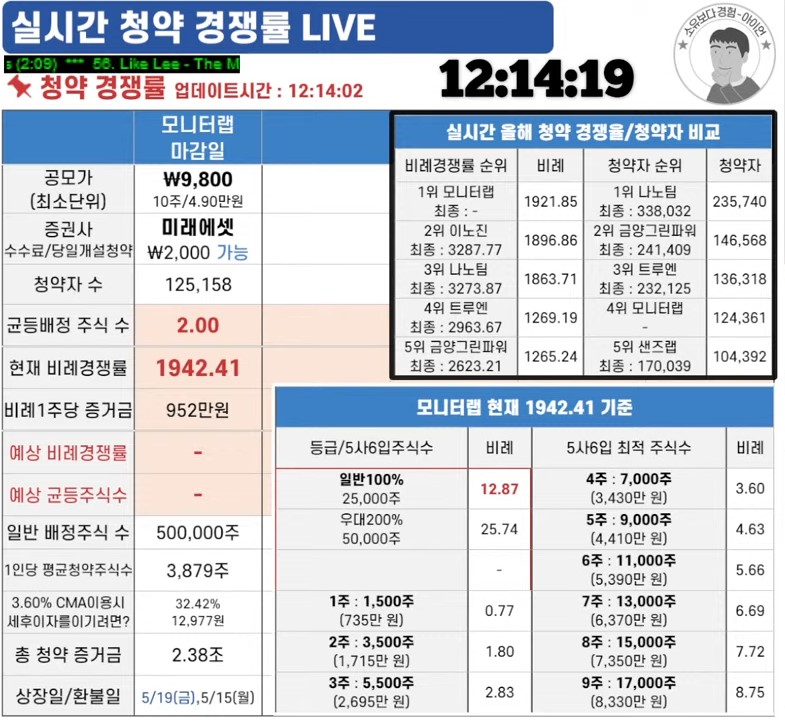 모니터랩 실시간 경쟁률