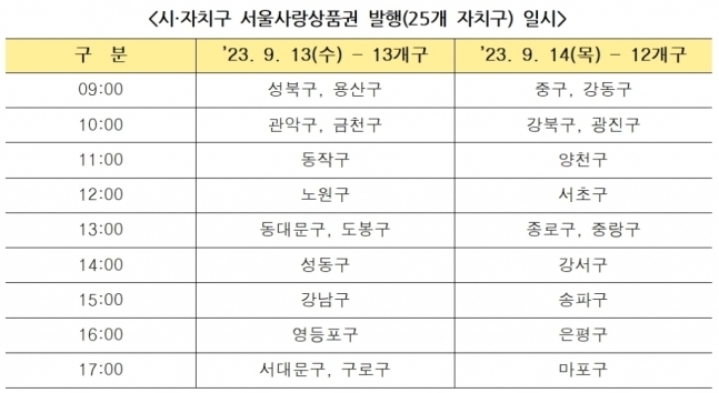 서울사랑상품권 연 발행일정 및 발행시간