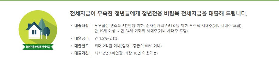 중기청 전세자금 대출 (금리 1.2% / 최대 1억 ) -> 청년 버팀목 전세자금대출 (금리 최대 2.1% / 최대 2억)