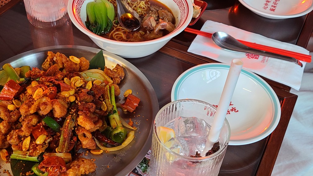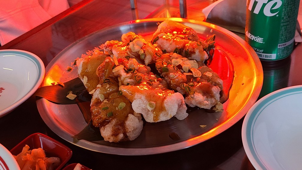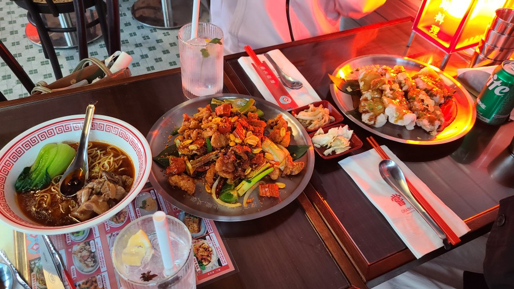 정통 중식이라기 보다는 퓨전 음식에 가까운데 우리는 라즈지와 꿔바로우, 우육면을 먹었다. 보통의 인스타 맛집이나 핫플레이스는 가격대비 가성비가 안좋은 경우가 많아 미리 많은 양을 주문하였는데 창창의 메뉴들은 생각보다 양이 매우 많았다. 음식들이 자극적이고 아주 맛있었는데, 이중 라즈지는 치킨에 쯔란을 넣고 볶은 맛으로 술안주로 최고였다.