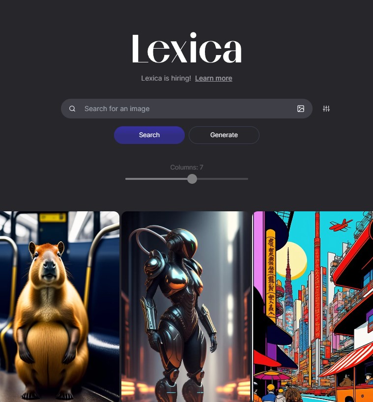 렉시카 는 내가 가지고있는 이미지를 업로드해 비슷한 느낌의 ai생성 이미지를 찾거나, 기존에 생성된 이미지들의 프롬프트를 검색해서 비슷한 프롬프트를 찾을 수 있다.