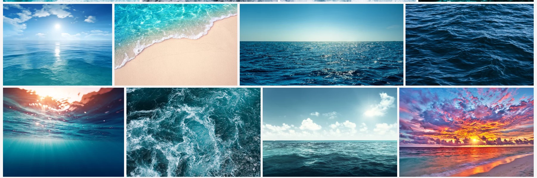 먼저 바다에 대한 이미지를 생성한다고 가정해 보자. 스톡사이트에 바다를 검색하면 수많은 모습의 바다가 보이는데, 프롬프트를 생성하는데 가장 쉬운 방법은 모방이다.