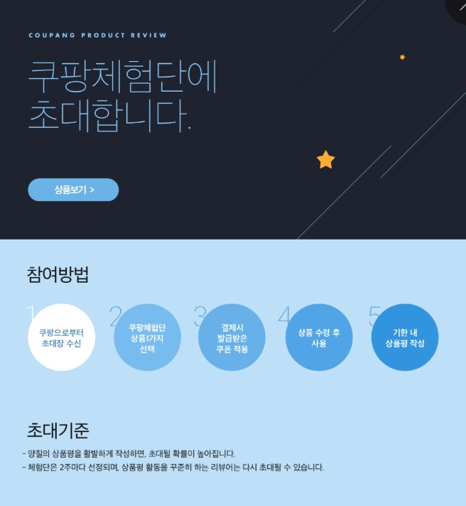 쿠팡에서는 2주에 한번 체험단을 모집하여 상품을 무상으로 제공하고, 쿠팡 체험단은 상품을 사용해본 뒤 상품 후기를 남기게 된다. 생각보다 고가 상품들도 있고 좋은 상품을 무상으로 제공받을 수 있다는 매리트가 있어 나는 오늘도 열심히 쿠팡 상품리뷰를 남긴다.