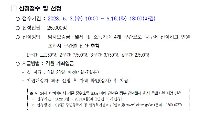 도시 청년 주거안정을 위해 서울시에서 2023 청년월세 지원 사업을 시행한다.