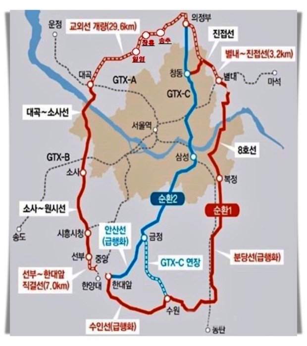 전세 계약 만료일이 다가오면서 같은 금액으로 서울에서 북적북적 사느니 차라리 외곽으로 이사가는게 나을까 고민이 많아지는 요즘입니다. 본가가 일산이라 일산에서 출퇴근을 생각해 봤는데, 서울 한복판에 있는 회사까지 출퇴근 시간이 너무 오래걸리겠더군요. 그나마 내년도에 개통 예정인 GTX 노선 근처로 이사간다면 서울 접근성이 좋아지지 않을까 하여 GTX 노선을 정리해보았습니다.