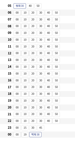 서울행 첫차는 5시 39분, 막차는 12시 47분으로, 새벽에 근무하시는 분들에게도 희소식입니다.